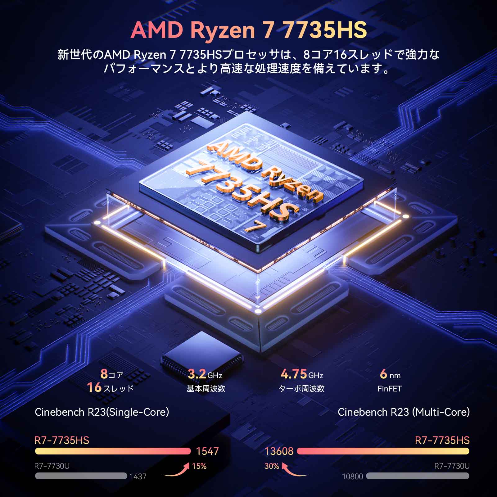 ノートパソコン 新品 AMD Ryzen 7 7735HS 【メモリ16GB DDR4 SSD 512GB】 最大4.75GHz windows11Pro 16インチ ノートpc WiFi6 BT5.2 フルHD ビジネス 高速放熱
